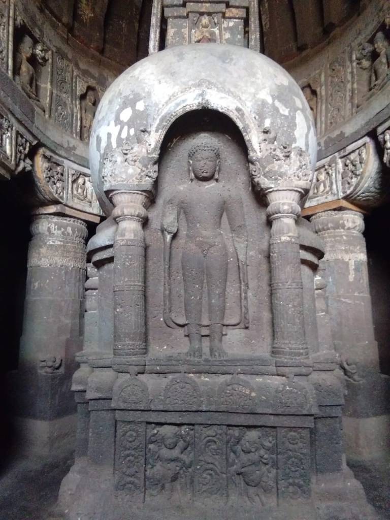 At the very end, in the centre, there is a huge βStupaβ (Buddhist shrine) which was built during the initial stages of construction by the monks of Hinayana phase of Buddhism. According to the ancient Buddhist culture, after the death of a person, people used to burn the dead body and then build a hemispheric dome over the ashes. This hemispheric-shaped dome is called as βStupaβ. The monks believed it to be a symbol of Lord Buddha. As over the years, many monks have been worshipping in these Chaityas, I could instantly feel the peace and divinity after entering a Chaitya.